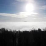 Azért így is nagyon érdekes és szép volt, lent sűrű köd, pára, komorság, fent pedig szikrázó napsütés, felhőpaplan, és a kettő közt mindössze 5 perc telt el.
