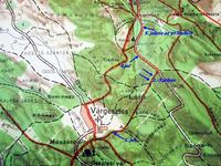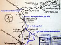 Ránézve a térképre azonnal szemembe tűnt a kék + jelzés, amely Várgesztes szélénél csatlakozik a mai kékbe, tutira vettem hogy ez valamikor a kéktúra útvonala volt. A régi kékeket sokszor festik át + jelzésre. Megnéztem a régi füzeteket és lám, tényleg így is volt, de arra nem figyeltem fel ekkor még hogy a '61-es kéktúra vonalvezetése összesen (legalább) 3-szor változott meg, mire kialakult a mai változat. (Egyébként rendhagyó módon, a Zsigmond-kővel együtt ez a legszebb.)