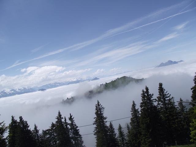 Mi Franciaországban a Mont Blanc-nál jártunk úgy, hogy az Aiguille du midi felvonó teteje már napos volt, körbe-körbe meg a négyezresek törtek ki a felhők közül, na az ilyesmi pazar.