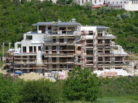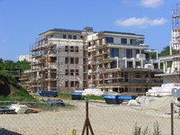 A fényképekhez képest jóval több ablak van már benn (főleg az A és B épületben) és a hőszigetelés+vakolat is szaporodik a falakon. Na és pesrze a nagy különbség a fotókhoz képest az a 4 jómunkás ember akit rajtakaptunk a munka közben! :)