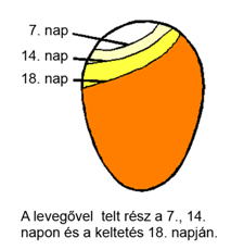 Közvetlenül a belső pattogzás kezdetére a tojásban a légkamrának a tojás 1/3-át ki kell töltenie! Ha kisebb, sok volt a pára az előkeltetés során. Ha nagyobb a légkamra, akkor kevés volt a pára. Egy hasznos Link a megfelelő vízvesztésről.