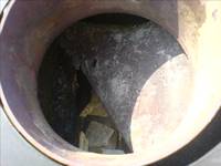 A kisveréb le tudott jönni, akkor nagy elzáródás nem lehet. A kémény egyébként most volt két éve hogy építették. A kályha november végén lesz két éves.