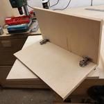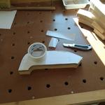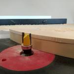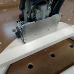 A saját "felsőmaró asztalom" -szigorúan idéző jelben- kb. 15 éve született meg. Nagyjából fél órát szántam rá, azóta is ezt használom alkalmanként. Egy darabka rétegelt lemez, meg alul némi merevítés. Rászórítózom 2 bakra és kész.