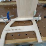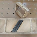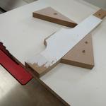Persze CNC-m nincs, így csináltam egy tolóasztalt a maróhoz, hasonlót, mint amit a körfűrészes egy penge szélességű csapoláshoz, csak itt 8mm-es marószár dolgozott.