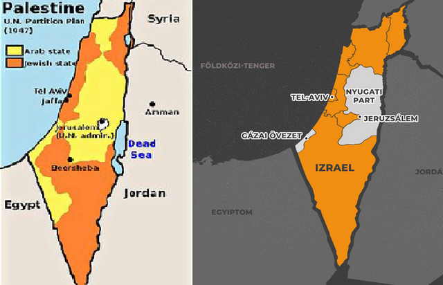 Ez nagyon idiotán volt megkomponálva. Húzni kellett volna egy vonalat a Holt- tenger É-i partjától kb. Tel-Avivig , es nyilat huzatni a palesztinokkal meg a zsidókkal hogy ki melyik részt kapja.