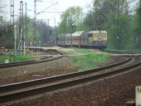 Ez a vonat jön Cierna nad Tisou ( Ágcsernyő ) felől szép piros kényelmes szlovák kocsikkal. Ha tehetem, hogy kocsi nélkül menjek a Balatonra, mondig ezzel a vonattal megyek.Keletiben gépcsere és már rohan is a Balaton felé.