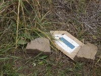 Ötletes,egyedi jelzés a Jagus után a dzsindzsásba való letéréskor.Nagyon kell figyelni,nem árt a lábunk elé nézni,hogy észrevegyük. Köszönet a kirakónak. A letérés után kb 2-5 m-re jobbról van egy fa,amin ott virít a kék jel,tovább haladásra(tévesen !)