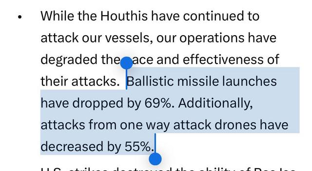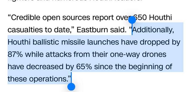 Arról nem is beszélve, hogy minden komolyan vehető szakértő azt mondja, az usákok eddig igazából meg sem tudták karcolni a houthik katonai struktúráit, civileket és civil infrastruktúrát pusztítanak folyamatosan.