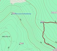 A tuhun rajta van a gázló, a csúcs helye, és a T elág helyét is sikerült szerintem belőni (ezeket megjelöltem a mellékelt képen). A 30-40 fokos emelkedő mit jelent? Nekiálltál iránymenetben tökön-babon, vagy a tuhun is jelölt "ösvényt" követted ami északról emelkedik? Azért tettem idézőjelbe az ösvényt, mert a tuhun sosem lehet tudni hogy tényleg ösvény-e, vagy csak valakinek a tökön-babon megközelítését rajzolták fel mert a trackelő elfelejtette odaírni hogy az ott nem út