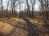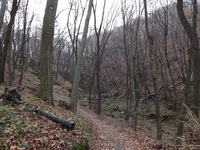 Pár száz méterre a letéréstől szemlátomást egy széles, mély árkot (vízmosást, patakmedret?) szel át a régi országút, persze szintben, kb 3-4 méter magas töltéssel. Na, mondom, itt lenézek a mederbe, valaminek lennie kell...