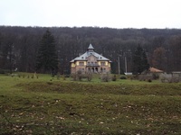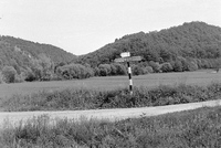 Káld, és Hosszúpereszteg közt, ahol most a kék jelzés nagyjából derékszögben elfordul a magaslesnél, valaha egy major volt, külön iskolával. A kép 1978 szeptemberében készült.