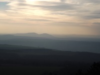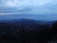 2014.09.14. Gánt - Várgesztes. A hétvégére elég esős időt mondtak, így csak az utolsó pillanatban döntöttünk az indulásról. A kiválasztott szakasz a Gánt - Várgesztes lett, így 6:50-kor már a buszon ülve reménykedtünk, hogy a hajnalban még szemerkélő eső alább hagy. Mire a busz Bicske felé járt, már ki is sütött a nap, és Karcsi bosszankodva jegyezte meg, hogy a napszemüvegét otthon hagyta :) Csákváron volt bő fél óra a csatlakozó járatig, így megcéloztuk a kocsmát, de az vasárnap csak 9 órakor nyit :O Sebaj, a közeli bolt elé támasztott biciklik megmutatták a helyes utat :) Aztán a mi buszunk is begurult, melyre felszállva szomorúan tapasztaltuk, hogy megint kezd cseperegni. Gánton gyorsan le is rendeztük a bélyegzést a Gránás th. -nál, és mindjárt az esőköpönyegeket is felvettük. Szerencsére nem nagyon esett, így fényképezgetve indultunk, hogy elérjük a kék sáv jelzéseket, melyek jól követhetőek voltak, bár némelyik elég idős. A jelzések alatt néhány helyen az itteni IVV túra jelzései is fellelhetőek, amelyek sokak számára összetéveszthetőek a forrás jelzéssel. Hamarosan kereszteztük a sárga sáv jelzést, ahol picit bonyolult a kereszteződés jelzettsége, de végül is rövid gondolkodás után maradtunk az egyenesen vezető úton. Ez be is jött, mert 80 méter múlva egy halvány öreg jelzés megerősített benne, hogy jó úton járunk, majd kisvártatva egy újabb friss jelzés hirdette, hogy ez bizony a kéktúra jelenlegi útvonala. Jól haladtunk a kellemes úton, és közben az eső csepergése is elállt. A Sámolyi-Bükk felől szarvasbőgés hallatszott, miközben a nyeregi csomóponthoz érve, csak egy halvány szalag mutatta a követendő utat. Kb. 100 méter múlva egy friss jelzés szerencsére ismét megerősített benne, hogy jó helyen járunk. 12 perc múlva megláttuk a pecsét jelzést, és azt követve meg is leltük a bélyegzőket. A füzet pecsételve elrakva, elemózsia elővéve, és irány tovább. Az Oroszlány felé induló kék négyzet jelzés leágazása nem túl esztétikus kialakítású, itt nem ártana "retusálni" a jelzéseket. Rengeteg gombát láttunk út közben, ilyenkor picit sajnálom, hogy nem értek a gombákhoz, bár akkor meg egy csomó idő elment volna gombaszedéssel :) Így csak a szederbokrok akadályoztak a haladásban. No nem fizikailag, csak egyszerűen az út szélén csábítottak egy kis nassolásra. Ennek ellenére jól haladtunk, mert 11:30-ra már lefelé jöttünk a Csáki vár falairól. Pontban délben el kezdett szakadni az eső. Attól féltünk, hogy a délutánra ígért eső az, ami nem késett egy percet sem, és innen ez a sorsunk. Szerencsére 20 perc múlva elállt, pont mire leértünk a Kőhányási pecséthez. Itt egy futó előzött meg éppen, így mire elővettük a füzeteket, már tovább is állt. Gyors pillantást vetettünk az Avilai Szent Teréz szoborra, majd a kápolna lesőlyukán is bekukucskáltunk, aztán irány tovább, mert úgy láttuk, hogy esélyes elérnünk a 14:05-ös buszt Várgesztesen. Innen már frissen festett, szépen kivitelezett kék jelzések vezettek a hátralevő úton. Továbbra is gomba hegyek közt haladtunk, aztán szépen be is érkeztünk Várgesztesre. Az utcán arra lettünk figyelmesek, hogy néhány kertben az orgona virágzik. A kocsmába betoppanva egy turista csapatot találtunk, akik szintén itt múlatták az időt a busz indulásáig. Mi is gyorsan pecsételtünk, egy sör társaságában, majd kisétáltunk a buszhoz. A menetrend elég szűk átszállást hagyott a vonatra, úgyhogy felkészültünk a spurira. Szerencsére a busz 3 perccel hamarabb beért, így rohanni azért nem kellet, de kilépve hamar a pénztárhoz értem. Miközben a pénztárnál álltam, kiírták, hogy a vonat késése 10 perc. Mondom magamban kár volt így kilépni.Aztán lementünk a 4-es vágányra. Kisvártatva át tették a kiírást az 5-ös vágányra, persze emelve a késést 20 percre. A hangosbemondó már 35 percet mondott az indulásra. Bejött a vonat, felszálltunk hátulra és leültünk. Aztán leszállítottak, hogy műszaki probléma miatt csak a vonat eleje megy el. Leszálltunk, és az eleje el is ment nélkülünk... De aztán kiderült, hogy az elejével volt a műszaki probléma. Így visszaülhettünk megint arra, amelyikről leszállítottak... No de a lényeg, hogy 32 perces késéssel el is indult végül. Nagyon szép nap volt, az eső ellenére is jól éreztük magunkat, így ez a vonat késés sem okozott bosszúságot. Aztán végül a 4-es metrót is kipróbáltam, mert még eleddig nem volt alkalmam rá :) Meg egy kis metrópótlás is, hogy a közlekedési akadályokból itt is jusson. Mire hazaértem, úgy megéheztem, hogy egy egész csülköt megettem egy ültő helyemben, így koronázva meg ezt a szép napot.