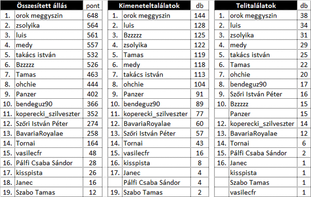 kimenetel eltalálása és még a gólarány is stimmel: 5 pont