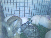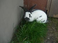 A másik nyuszi 7 hetes kék színű, fehér aljszőrzettel. Mindkét nyuszi apja a harmadik képen látható thüringiai kabátrajzos bak. Oltva vannak.