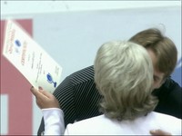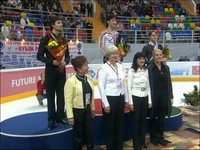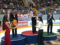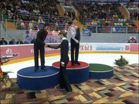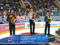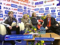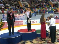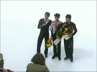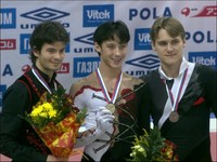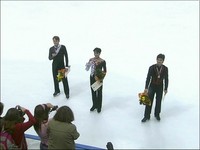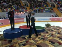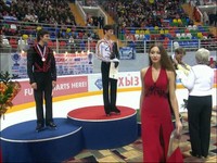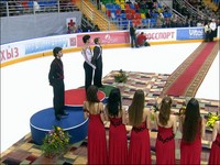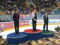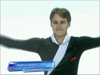 Griazev gave a solid performance to “The Godfather” and other movie soundtracks by Nino Rota that included a triple Lutz, a big triple Axel, a triple Axel-double toeloop combination and three more triples as well as a level four change foot sit spin and three level-three spins. The reigning Russian Champion scored 135.18 points (69.68/65.50) and was ranked fifth in the Free Skating. He held on to third place with 206.13 points overall. “I am glad that I was able to do my job. I did almost everything”, Griazev told the press. “I am not too surprised (to be in third), because I was third at another Grand Prix event (2005 Cup of China) with a similar deep field a while ago”, the 22-year-old skater said.
