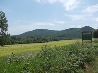 jelenleg a főúton megy a kéktúra, felkapaszkodva az út szélére így látszik a régi-új(?) útvonal nagyjából: a szántón túl, a mezőkön indul neki a háttérben magasodó Rezi várhegynek.