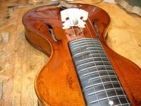A hárfahúr rá van kötve egy kis pálcikára, ami keresztben áll. Bélhúrkészítést még nem láttam, de mintha azt olvastam volna valahol, hogy hosszában felhasogatják a belet, és több csíkból sodorják össze a húrt, amit azután még viaszolnak, meg nem tudom mit csinálnak még vele. Talán le is csiszolják.