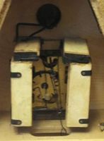A madarat tartó rúd aljánál van egy kis pöcök, a síp valószínű takarja, és lehet nem látni. Ott kellene lenni egy kis rugónak, ami visszahúzza a rudat, a madárral együtt, ami pedig össze van kötve az ajtóval. Amikor elindul az ütőszerkezet, egy kar ("drót") megnyomja ezt a kis pöcköt, ami a madárrúd aljánál van, ennek hatására kinyílik az ajtó, ütés végeztével a kar visszaugrik, és a kis rugónak vissza kell húzni az ajtót.