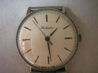 Végre találtam már egy kedvemre való karórát is a piacon. Egy kedvenc Rakéta a 80-as évekből. Jó a tokja, csak dzsuvás. És nem tudom mennyire látszik a képen, de enyhén texturált a számlapja.