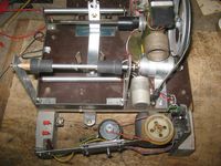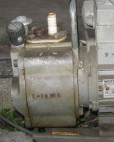 Szerintem ez egy fejőgép vákum szivattyú. Javítottam ilyet, kb -1,0 -et tud. Belül egyszerű mint a faék. Az álló és a forgórész is kör alakú, csak a forgórész tengely vonala el van csúsztatva az álló rész tengely vonalától. Tehát egyik oldalán a forgórész majdnem hozzáér az állórészhez. Általában 4 darab szénlapát van benne. A motorral ellentétes oldalon lévő zárólappal szokott probléma lenni, ki szokta marni a forgórész és elmegy a vákum. Ilyenkor le kelle marattni a lapot.