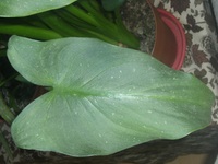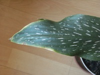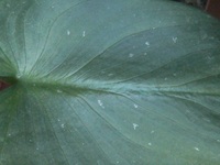 De a legijesztőbbek mégis a levélerezettel keresztirányban futó szaggatott csíkok és egyéb furcsa mintázatok. És olyan furcsa, matt, zsíros fényű az egész növény, látszik, hogy beteg. Talán vírus lehet?