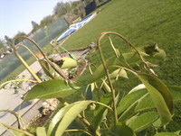 na, megint segítségre lenne szükségem, mert most látom, hogy a meggyfacsemetét, ami idén fordult termőre, elkapta a monília. egyelőre nem olyan súlyos a helyzet, de 3-4 hajtáson a levelek fonnyadni kezdtek. nem igazán értem ezt a fertőzést, a mellette lévő öreg meggyfának semmi baja, pedig szintén érzékeny a moníliára, 1-2-szer átesett már rajta. és persze a szomszéd enyémmel azonos korú fájának sincs baja!! :)) ráadásul a kis fát nyilván sokkal alaposabban meg tudtam permetezni lemosóval is meg monília elleni szerrel is. most nem szívesen használnék chorust, ha nem muszáj, viszont ha lehet, akkor rézoxikloriddal lepermetezném. lehet? kis gyümülcskezdemények vannak már, de nem zavar, ha esetleg a permetezés miatt nem elmegy, vagy nem lesz ehető a termés. csak a fát tudnám már kikezelni véglegesen ebből a szarból...minden évben leszed róla a monília pár ágat. :(