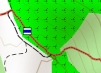 A zöld út amit berajzoltam az a jó, ahol a zöld karika van ott készült a másik 2. A földre hányt gallyaknál kezdődik a jó ösvény.