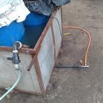 Ennél kicsit már fejlettebb vagyok: 1 m3-es mezgazd vegyszertartály (rácsos) felső 1/4-e levágva, ebben állnak a hordók, és csak köréjük öntöm a vizet, amit időnként forró vízzel is megküldök, de ha nem nagy melegítés kell, akkor egy kicsit erősebb akváriumfűtő tartja 19 fokon, legalábbis a tetejét, amíg beleér.