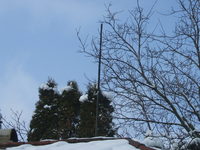 Egy 2X21m szárhosszúságú inverted V antennám van, középen 10m, a végein 2.5-3m magasan. Erről egy 13m hosszú tyúklétra jön le a teraszra. Itt van benne egy 1:4 áttételű balun, onnan pedig 50 Ohm-os koax kb. 4-5m. Ez megy bele az ATU-2012-be, ami 160m-en nem túl jól, a többi 8 sávon viszont tökéletesen leilleszti az antennát. Ezzel QSO-zom egészen elfogadható eredményekkel. Próbából kivettem a balunt, már 10W-nál is szétcsapta a világot, mindent zavart ami csak árammal működött. Vele viszont 100W-nál sincs semmi zavar, pedig az antenna fele a ház fölött van.