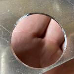 De volt, hogy cső-átvezető furat kellett egy 60 x 80 centis lap közepe tájékára - amihez (nekem legalábbis) nincs olyan hosszú benyúlású szorítóm, amivel biztonságosan tudnék rögzíteni bármit is.