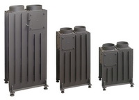 120-as, vastagfalú, 6 csöves (a csövek átmérője kb 6 cm, szintén vastagfalú), a teljes külső átmérő kb. 28-30 cm és 1 méter magas. Január óta használom, szinte duplázza a kályha teljesítményét.