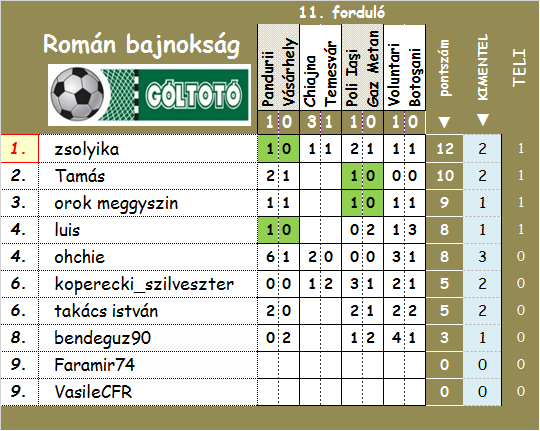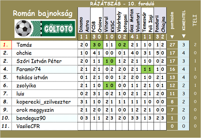 – ha egy csapatnak eltalálod a rúgott góljainak számát, akkor annyi pontot kapsz, amennyi a rúgott gól