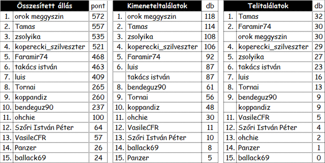 – ha egy tipped telitalálat kapsz még 3 pontot (a fenti pontokon túl)
