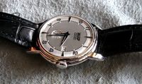 Elhiszem, hogy jó szerkezet dolgozik benne, de a sajátot jobban kedvelem. A 38 mm sajnos nekem gáz, elég gebe vagyok (ez a mai trendben komoly hendikep). De tényleg marha stílusos a vekker, kifejezetten tetszenek a '40-50-es évek órái.