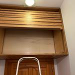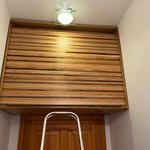 Az volt a nehezítés, hogy a kitöltendő teret egy lámpa határolja, vagyis sima, hagyományos ajtó nem jöhetett szóba. Rolós, tolóajtó mellett döntöttem, mondván ilyet még úgysem készítettem. Persze mostmár sokmindent máskép csinálnék, de megmutatnám az éredményt: