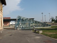 Az epulet hattulrol (utca felol): Inkabb erre forditottak volna a Hodos-i alluljaro arat! Vagy arra, hogy amikor Ptuj allomas vaganyhalozatat atepitettek (alluljaro, valtok csereje, uj peronok, jelzok komplett csereje, stb.), akkor betonaljasra tettek volna az egeszet, ne talpfasra (mert ma meg az!), ami ugyan elegantos, de nyilvan nem a vegleges es nem is a jovo ...