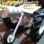 Először nekem csak ilyen sima hajtásos 155-ös kapám volt. Én is sokat gondolkodtam a váltó megoldásán, mert kocsizni is kellett. Aztán akét-két kapa mellé csináltam erősebb lemezből tárcsát és szereltem rá trabant kereket, trabant gumival, mert ha a szekér meg volt rakva nehéz volt az elindulás. A sima gumikkal gázadásnál megemeltem a gépet, hogy a kuplung tudjon zárni és amikor kapart a súlypontomat áttettem a gépre és elindultunk. Több mint tíz évig jártam így.