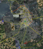 Hogy mi áll most a kerítés mögött, azt nem tudom. Azt viszont tudom, hogy nemcsak a kerítés sincs meg, hanem eddig a légvédelmi kiképző központot sem találtam meg. Az emlékeimben valami ilyesmi van, hogy Gatcsina Leningrádtól távolabbi (tehát déli) vége felé átmentünk egy vasúti átjárón bal felé (tehát keletre) majd ott mentünk még valami harmincegynéhány kilométert. Volt közben néhány kis település, de a neveket sajnos nem jegyeztem meg. A gyanúm szerint a LKK területe még nem tisztult ki a műholdfotón.