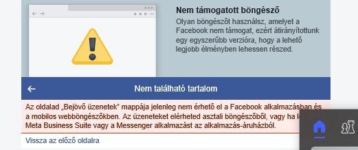Most nagy nehezen sikerült belépnem a Facebookra, de azt írja ki, hogy nem támogatott a böngésző, ezért csak valamilyen egyszerűsített alap Facebookot tudok elérni, ami semmire sem jó, még üzenetet se tudok küldeni. Amikor megpróbáltam, rögtön blokkolt.