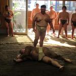 Mire az Oyakata végzett vele, teljesen kimerülten hempergett a ringben homokkal borítva.