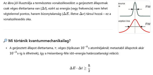 A természetes vonalkiszélesedés a Heisenberg-féle határozatlansági relációval magyarázható: *ΔE, Δt ≥ ħ/2. ahol: