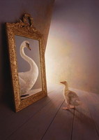 "Foghatom azt a tükröt, bárhogy, mert én úgy akarom. Hihetem, hogy egyenes, közben teljesen ferdén tartom. Vagy egy görbe tükröt tartok, amiben én hiszek. De te nem azt látod. Megszínesíthetem, mert nekem úgy tetszik. Játszhatok a képpel, hogy úgy láss, ahogy nekem jó. De felesleges. Légy te a tükröm... Akarj látni, ha még hibázik is valahol az a kép, mert ha nem ábrándot kergetsz megláthatsz, talán görbén, foltokkal, sárosan, se jól, se rosszul, se fehéren, se feketén, csak úgy."