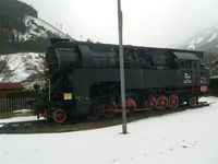 Ezek sajnos már mozdonyszobrok, de a hegyi vasút nyáron üzemel. A vasút neve Erzbergbahn. A fényképek ma készültek, Vordernberg főterén, illetve a vasútállomáson. Télen azért sincs vonatozás, mert a sípálya keresztezi a vágányokat, és a síelő lobbi itt is erősebb, mint a vasutas. Én viszont síelek a vágányok között...