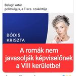 A VIII. kerületben élve, itt szocializálódva, a helyi roma és nem roma közösségeket, a családokat, a tereket, a szereplőket és a valóság logikáját mélyen ismerve szakmailag felelősen kijelentem: Bódis Kriszta jelölése túl nagy kockázat a Tisza számára, és veszélyezteti a 60%-os győzelmi arány elérését. A kerület társadalmi és politikai szerkezetéhez más típusú jelöltre van szükség – olyanra, aki hiteles, beágyazott, tiszta hátterű, és képes a kerület sokszínű lakosságát valóban megszólítani a mi jelöltünk Borsós Gabriella.