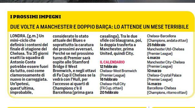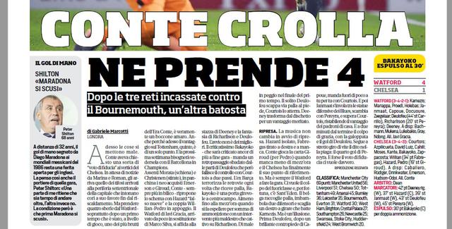 Mauro Cézar Pereira, az ESPN brazil szakírója – aki Willianon és David Luizon keresztül bizalmas információkhoz juthat – azt írja, Contét csak a Barcelona BL-ből való kiejtése menthetné meg, de a Watford elleni pontvesztés felgyorsíthatja az eseményeket.