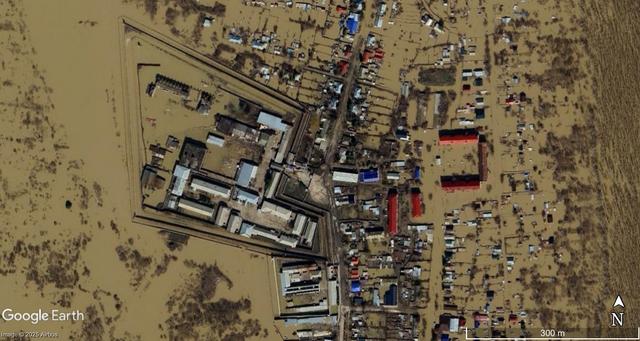 Vannak újabb képek is már róla, ott épp vadul építik a gátakat a környéken (csak eléggé felhős a műholdkép, gondolom azért nem tették ki élesbe). Ez amúgy egy börtön bejárata: