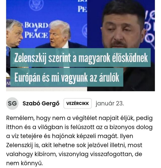 Orbán Viktor · Davosban tegnap Zelenszkij elnök elvetette a sulykot. Abban nincs sok újdonság, hogy a magyarországi választások közeledtével újra szájára vette a magyar kormányt, és személy szerint engem. Az már meglepő, hogy beszédében kiosztott minden más európai vezetőt is. Kevesli az Ukrajnának küldött támogatásokat, a fegyvereket és Európa eltökéltségét.Nem is kellett sokat várni a brüsszeliek válaszára: Ursula von der Leyen tegnap este bemutatta az Ukrajna fejlődését megalapozó útitervet. Ebben minden ukrán igényt befogadtak a brüsszeliek. 800 milliárd dollár Ukrajnának, gyorsított uniós csatlakozás 2027-ig, további támogatások, egészen 2040-ig. Idáig jutottunk. Miközben Zelenszkij elnök fordítva ül a lovon, a brüsszeliek fizetnének, mint a katonatiszt. Ehhez nekünk is lesz néhány szavunk. Jön a nemzeti petíció, ahol megüzenhetjük Brüsszelnek: mi nem fizetünk!