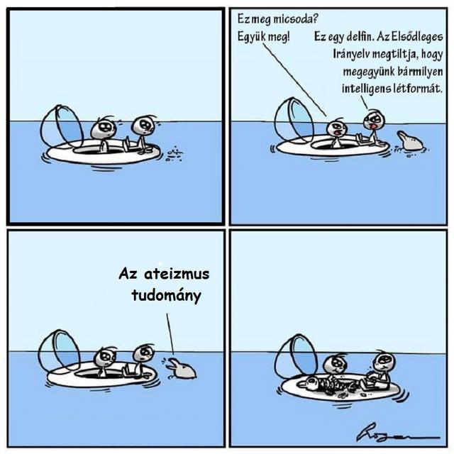 GiantGreenSparklingDuck 23 órával ezelőtt @Iván Gábor IGe Megint csak ott vagyunk, hogy van egy ismert fogalom: az istenhit. Amelyről tudjuk, hogy létezik, mert a szomszéd Mariskanénit megkérdezem és ő istenhívő. Ezt a létező dolgot elnevezni Istennek elég nagy butaság. Az Isten szó nagy jelentés tartamot hordoz, amely sem magában az istenhitben, sem gondolati dolgokban, sem más eddig ismert dolgokban nem jelent meg (nevezd téveszmének, vagy mémnek, teljesen mindegy). Az önkényes átnevezgetés csak azt eredményezi, hogy összezavarja az embereket, mert nem annak hívod ami valójában. Ha Dawkins ezt mondja, akkor nem értek vele egyet. Nem tudom mit szólnának az emberek, ha átnevezném az istenhitet kolbászra. Ugyanakkora butaság lenne, mint Istennek nevezni. Teljesen haszontalan a definíció. Olyan mintha a bögrémet, vagy a kutyámat nevezném Istennek, és akkor létezni fog. Van bármi, amely nem létezik ilyen alapon? A dolgokat nem lehet, csak úgy létezésbe definiálni. Mi lenne, ha írnék egy könyvet arról, hogy a kutyám Isten? Így Isten létezik. Nem lenne egy túl okos gondolat.