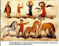 This diptych (36 cm high and now in Paris) Like Lampadii, Consul Anastasios (517), shown in both leaves, presides over a circus lion hunt to the left, and possibly a judgment scene or dramatic performance to the right. The inscription is in Latin, and the diptych may have been for distribution in Italian territories.