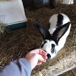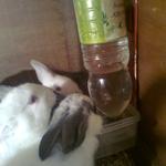 Ha beteszem a kezem alacsonyan, akkor nem támad, hanem érdeklődve odajön és elkezdené rágcsálni, de nem finoman, hanem úgy, mintha kaja lenne, így nem hagyom. Ha felülről közelítek, akkor felágaskodik és támad a mellső lábaival. De kezelhető, így nem zavar. Elvégre nem lehet minden nyúl kezesbárány.
